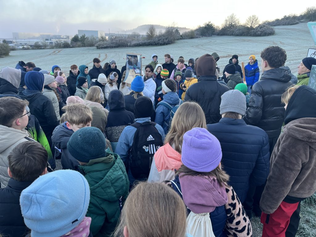 Trotz frostiger Temperaturen in den frühen Morgenstunden machten sich auch in diesem Jahr wieder mehr als 160 Schüler des Balthasar-Neumann-Gymnasiums und der Staatlichen Realschule auf den Weg zur Kreuzbergkapelle. Der ökumenische Kreuzweg der Jugend ist mittlerweile zu einem festen Termin im Jahresablauf beider Schulen geworden. Grundlage für die Meditationen an den einzelnen Stationen ist ein Materialheft, das von den Arbeitsstellen für Jugendarbeit der beiden Kirchen herausgegeben wird. Der Titel des diesjährigen Jugendkreuzwegs lautete „dahinter. Tiefer sehen, weiter gehen“.