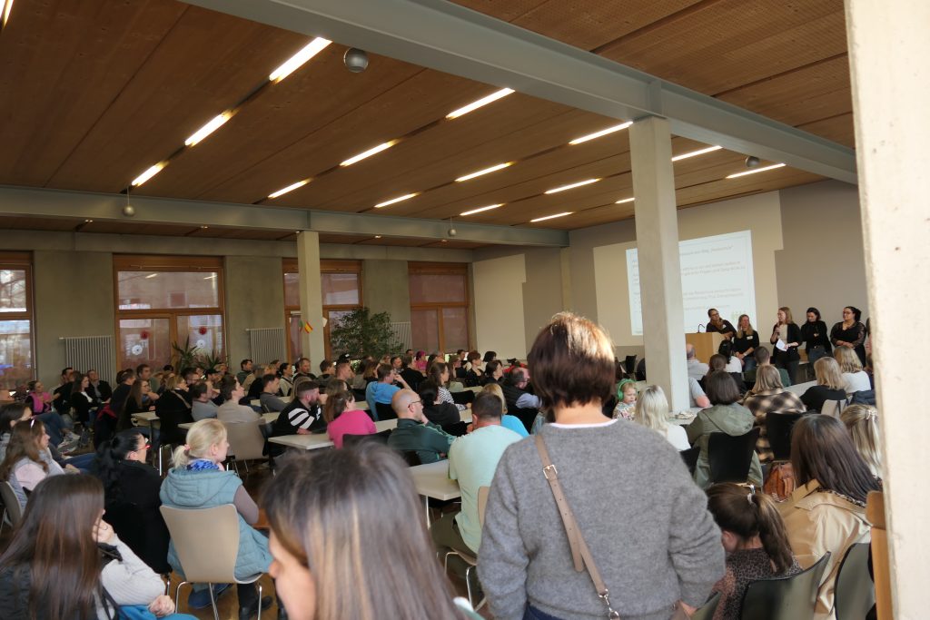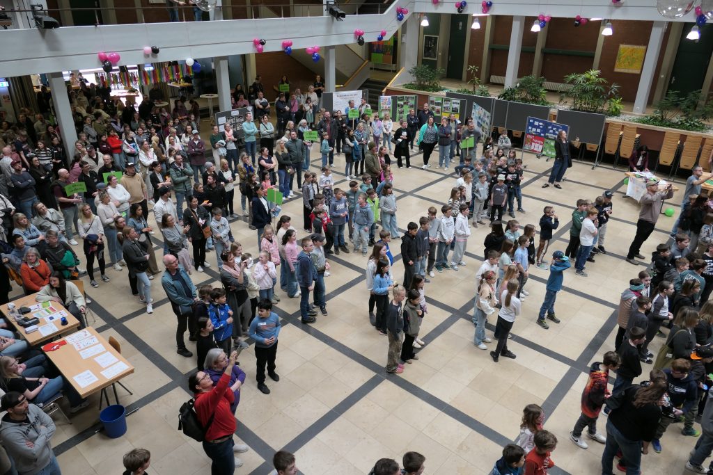 Zu Beginn begrüßte die Schulleitung die Gäste in der großen Aula. Anschließend machten sich die Kinder in Gruppen auf den Weg, um das Schulhaus zu erkunden. An verschiedenen Stationen präsentierten Lehrkräfte die unterschiedlichen Fächer, Räume und Wahlangebote.