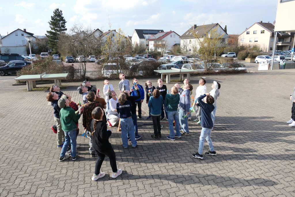 Zum Abschluss bastelten die Kinder kleine Raketen, die sie anschließend auf dem Pausenhof starten ließen.