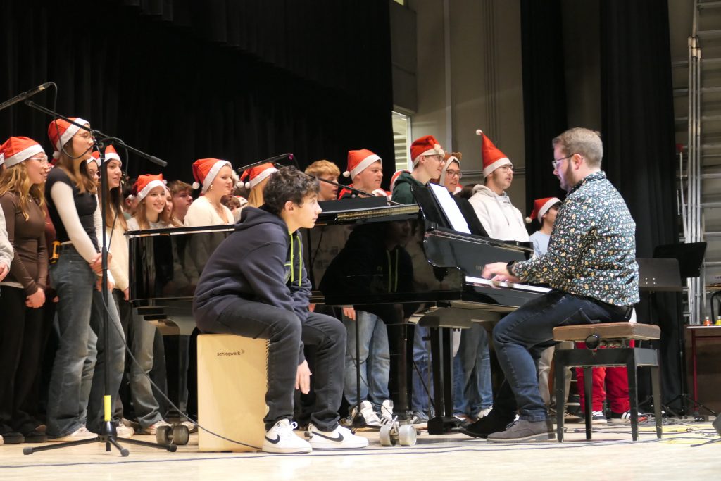 Erfüllt von der Vorfreude auf das Weihnachtsfest war das gesamte Areal der Realschule. Zahlreiche Schülerinnen und Schüler sowie Lehrkräfte, Elternbeirat und Förderverein sorgten bei den vielen Besuchern für festliche Stimmung. In einem ersten Teil wurde den Gästen ein abwechslungsreiches Programm in der Aula geboten. Dort unterhielten verschiedene Chöre und die Schulband die Besucher. Dieser musikalische Teil des gelungenen Abends stand ganz unter der Leitung von Beate Riedel, Thomas Koch, Andrea Becker, Julia Wiechert sowie Stephan Schmidt.